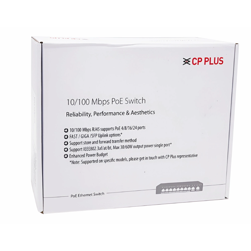 | Network Ports | 4, 10/100Mbps; RJ45 port; Max. 30W Output of Single PoE Port |